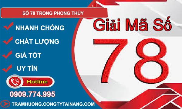 • Kết luận: Số 78 là một con số rất đáng cân nhắc trong phong thủy – nó vừa chứa năng lượng phát triển, vừa giá trị ổn định – “Ông Địa lớn phù trợ”. Nếu được sử dụng đúng cách và phù hợp với chủ nhân, số 78 có thể trở thành một trợ lực cho sự thịnh vượng lâu dài.
